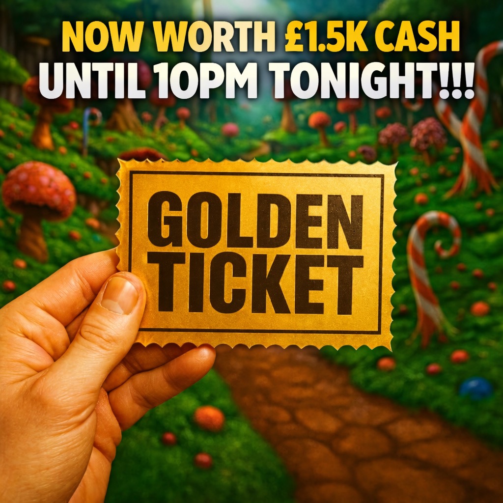 Next Golden Ticket Found Worth £1500.00 Until 10pm !!!!!