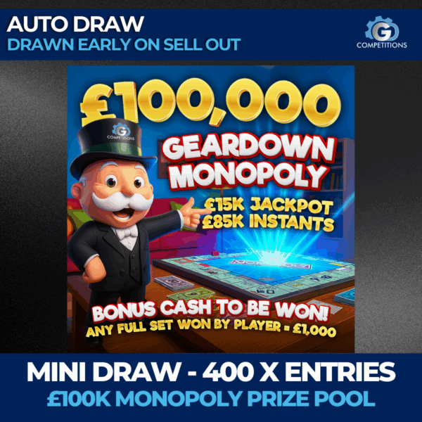 Auto Draw – LAST CHANCE MINI DRAW – 400 x Entries Into 🎲 MONOPOLY 🎲 £100K PRIZE POOL