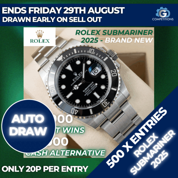 Auto Draw – MINI DRAW – 500 x Entries Into Rolex Submariner 2025 + £14K Instants ⌚️
