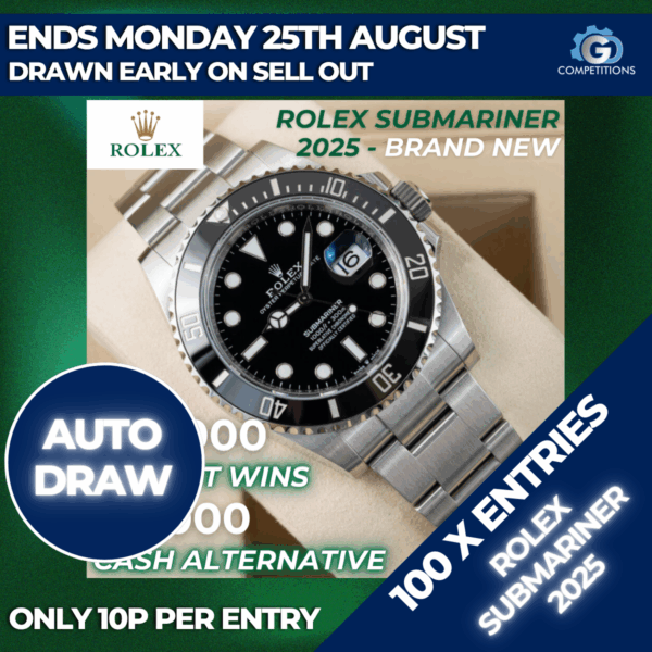 Auto Draw – MINI DRAW – 100 x Entries Into Rolex Submariner 2025 + £14K Instants ⌚️